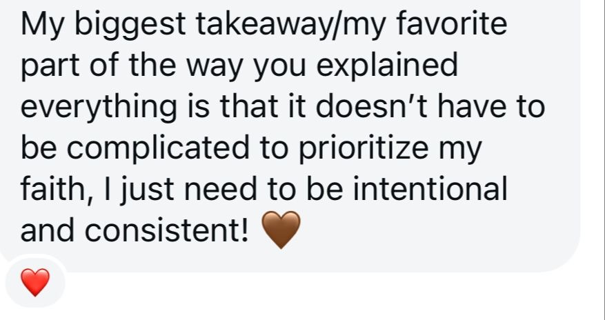 - Wants guidance and structure to know exactly what to be focusing on to grow her faith and build a deeper relationship with God.